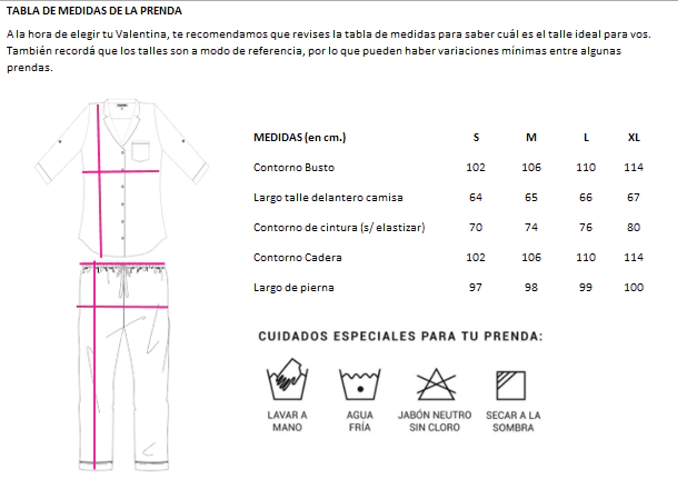 Pijama de sedita importada con estampa personalizada en champagne y negro. Vivos negros y botones naturales. Camisa mangas largas abotonada con bolsillo. Pantalón largo con lazo, elástico y bolsillos. Prenda delicada. Se recomienda su lavado a mano o utilizar el programa para prendas delicadas en el lavarropas (máximo de centrifugado 400 y agua fría).